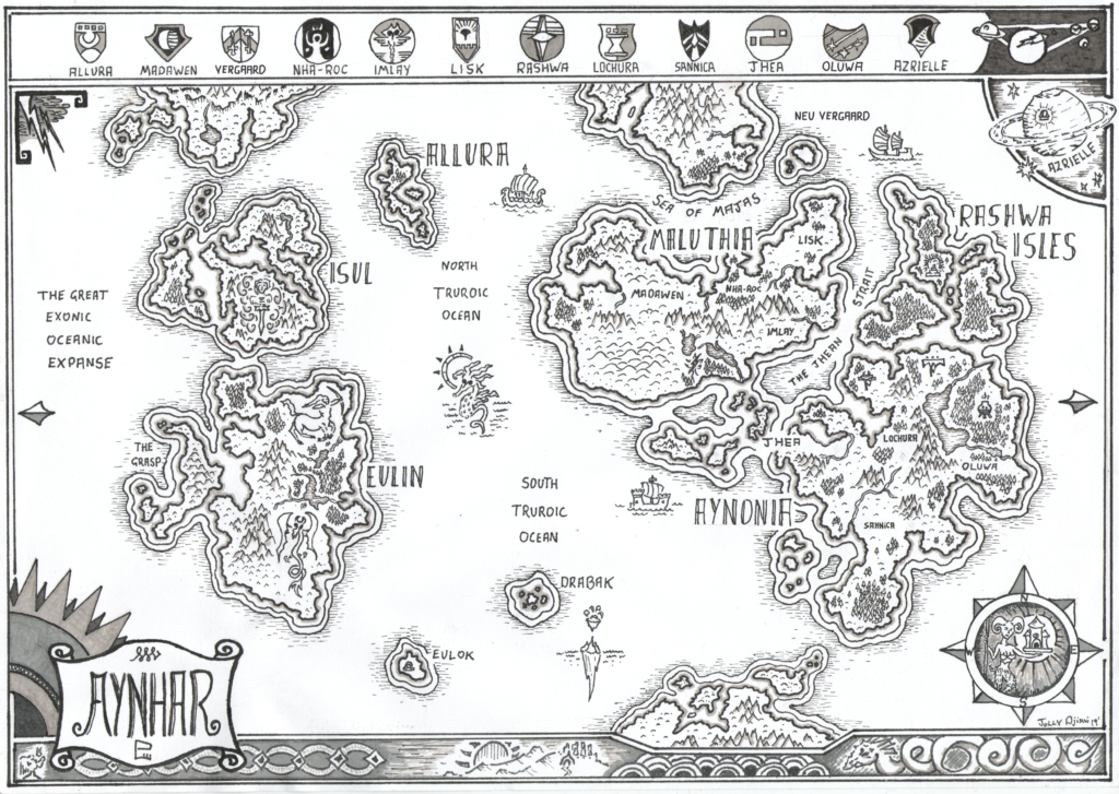 You might say that Aynhar is a young world, relative to the cosmological perspective of a god. The throes of its creation still dither and linger in places across the lands and sea. In places the mountains are still slowly descending from the air; in others deep chasms sprout lush forests, places where the elements are slowly settling, reverberating still with the chaos of their creation.